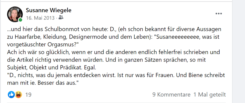 Und wer glaubt, dass es in der Sekundarstufe anders oder besser ist: Bitte sehr, meine ehemalige Fachschulklasse: