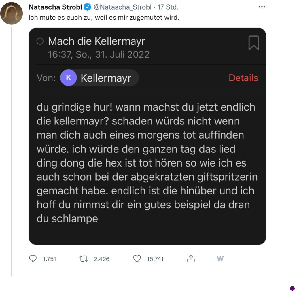 Und Natascha Strobl, eine österreichische Politikwissenschaftlerin, die sich besonders mit Rechtsextremismus beschäftigt, bekommt ein Mail: