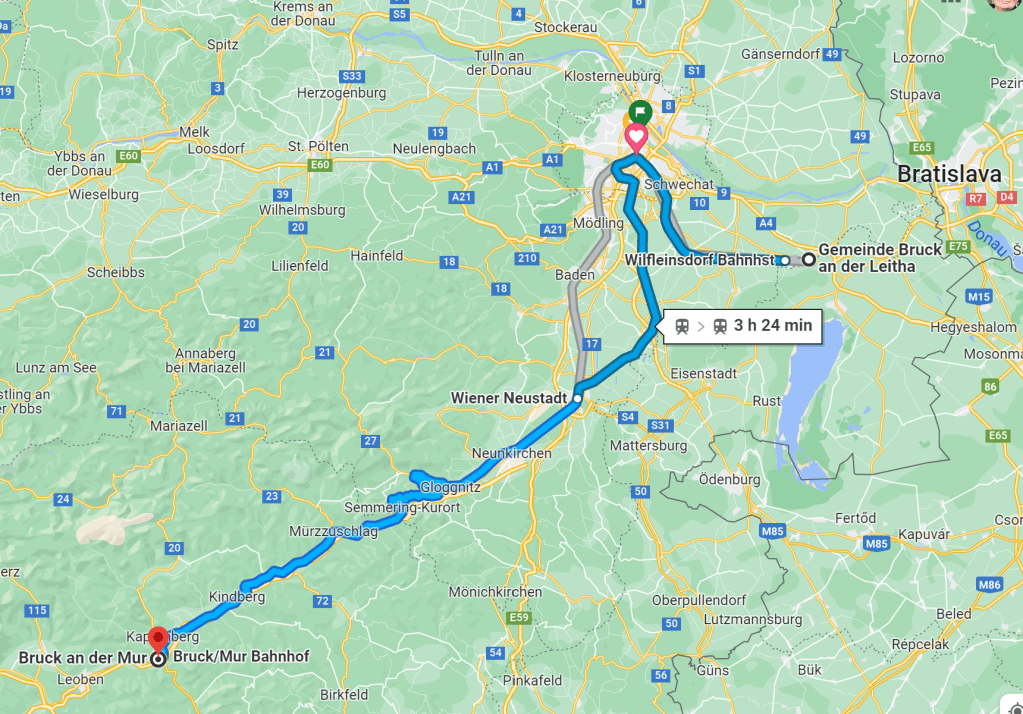 Weil wir uns das immer noch intensiv herbeihalluzinieren, holen wir die Kids laut Plan vom Bahnhof in Bruck ab. Blöderweise stehns nicht in Bruck an der Mur, sondern in Bruck an der Leitha. (Oder umgekehrt, no Bundesländershaming intended!)